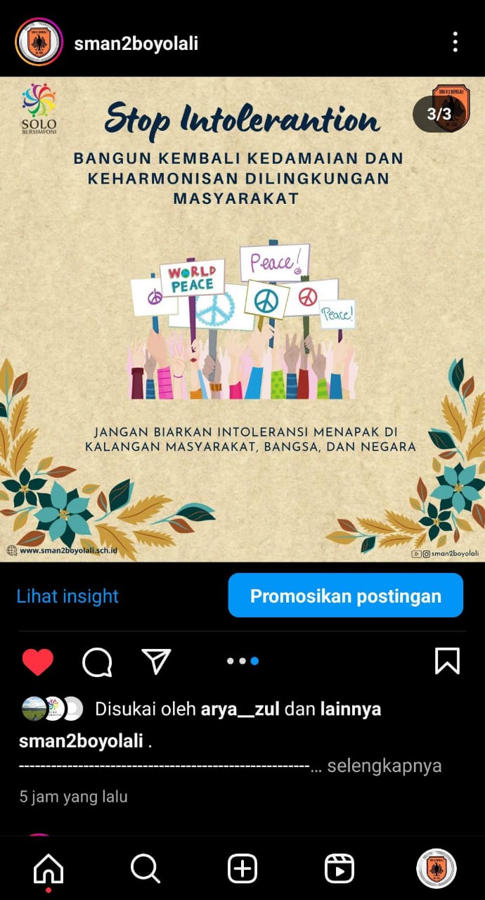 Siswa membuat content praktek baik tema Hasthalaku/P5/Pencegahan Intoleransi dan Radikalisme/ 3 Dosa Besar Pendidikan 1. Diunggah dalam media sosial sekolah