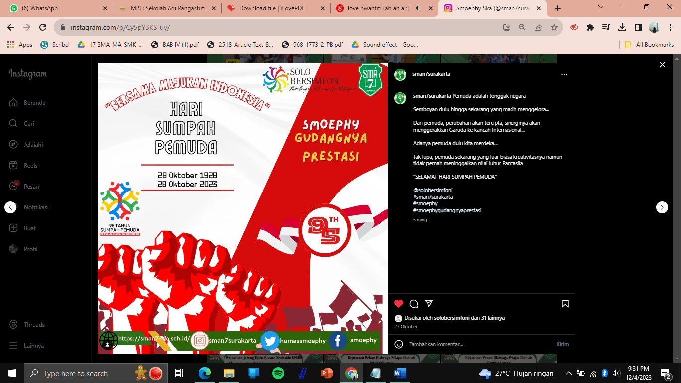 4 Keterangan Jawaban : Ucapan hari sumpah pemuda. Link: https://www.instagram.com/p/Cy5pY3KS-uy/?utm_source=ig_web_copy_link&igshid=MzRlODBiNWFlZA==