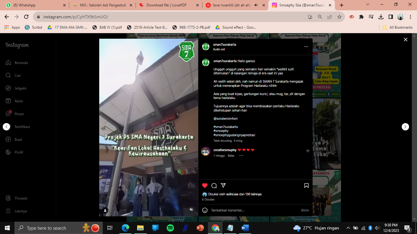 2 Keterangan Jawaban : Event gelar karya hari pertama. Link: https://www.instagram.com/reel/CyEzt78STqm/?utm_source=ig_web_copy_link&igshid=MzRlODBiNWFlZA==