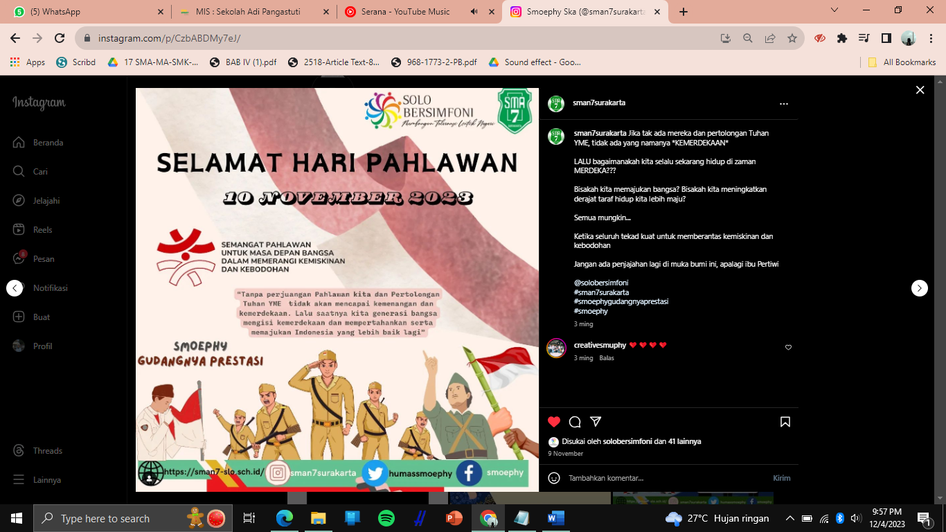 1 Keterangan Jawaban : Ucapan hari Pahlawan. Link: https://www.instagram.com/p/CzbABDMy7eJ/?utm_source=ig_web_copy_link&igshid=MzRlODBiNWFlZA==
