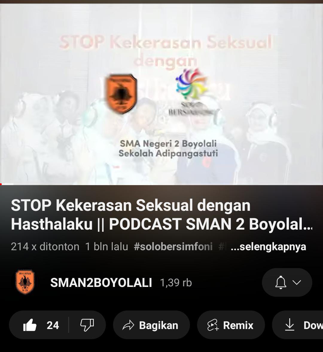 Siswa membuat podcast / spotify bertema Hasthalaku/P5/Pencegahan Intoleransi dan Radikalisme/ 3 Dosa Besar Pendidikan 1. Terlaksananya pembuatan podcast / spotify tema Hasthalaku / Profil Pelajar Pancasila