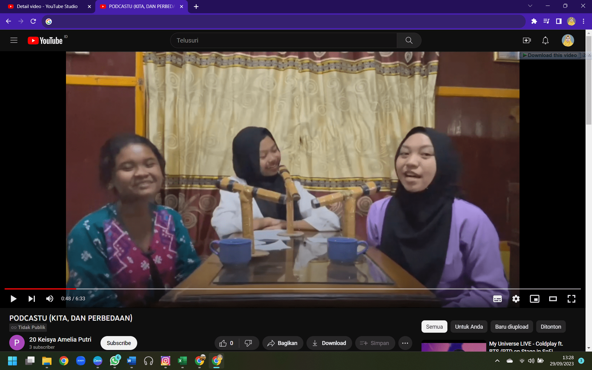 Siswa membuat podcast / spotify bertema Hasthalaku/P5/Pencegahan Intoleransi dan Radikalisme/ 3 Dosa Besar Pendidikan 1. Terlaksananya pembuatan podcast / spotify tema Hasthalaku / Profil Pelajar Pancasila