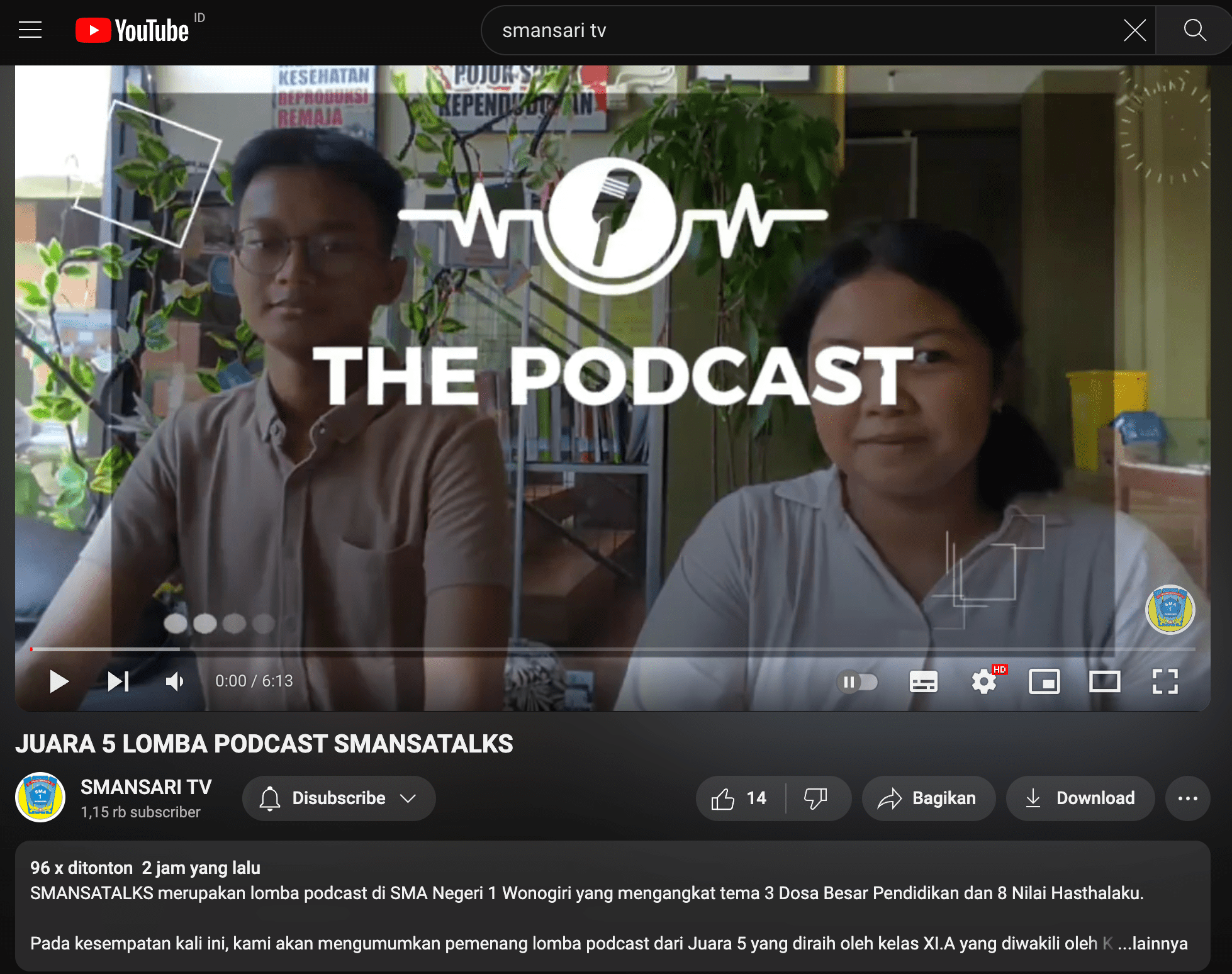 Siswa membuat podcast / spotify bertema Hasthalaku/P5/Pencegahan Intoleransi dan Radikalisme/ 3 Dosa Besar Pendidikan 1. Terlaksananya pembuatan podcast / spotify tema Hasthalaku / Profil Pelajar Pancasila