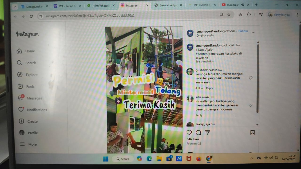 1 Keterangan Jawaban : 4 Kata Ajaib #Konten penerapan hastalaku di sekolah#https://www.instagram.com/reel/DGms9jxhKLL/?igsh=OHMxZ2ppejdsMGx2