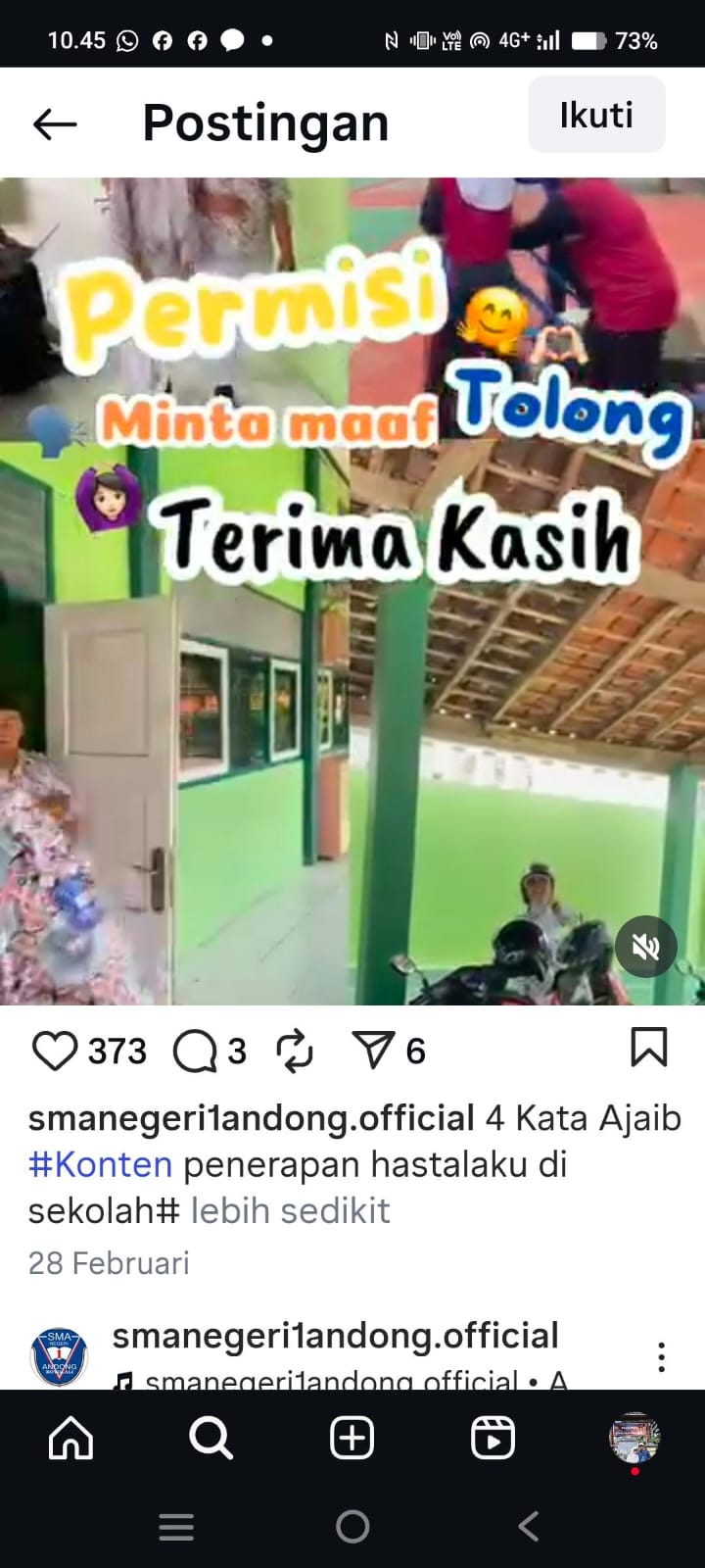2 Keterangan Jawaban : content praktek baik tema Hasthalaku di Instagram = smanegeri1andong.official