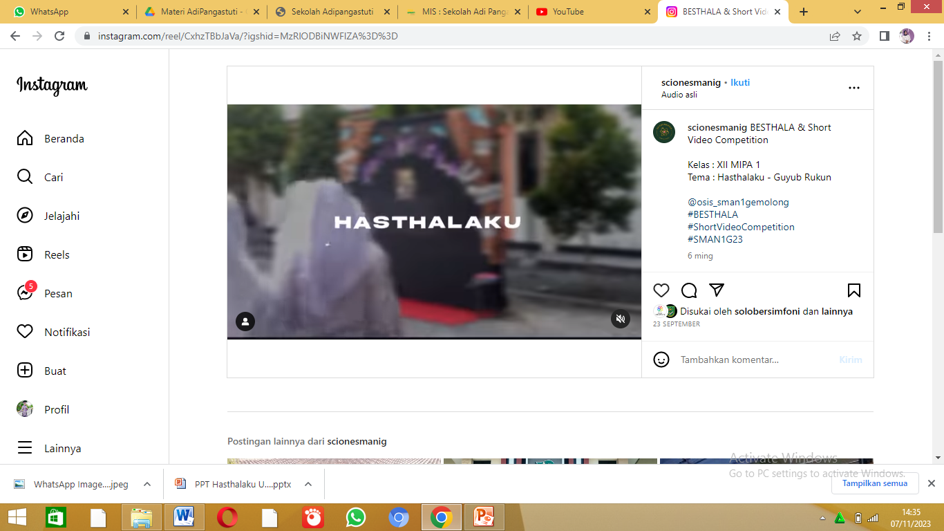 1. Submit ke MIS: Capture Upload di sosial media beserta link-nya