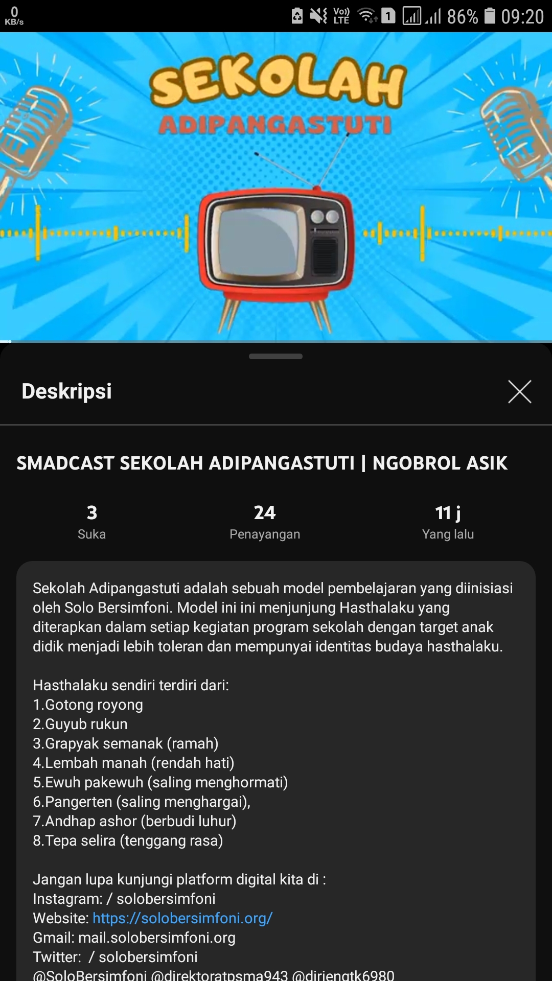 1. Terlaksananya pembuatan podcast / spotify tema Hasthalaku / Profil Pelajar Pancasila 2. Minimal 1x / bulan (minimal 6x selama program) 3. Diupload di channel sosial media sekolah |